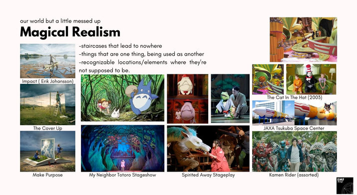 During talks with the director, the phrases "Magical Realism" "water" and "Suspension of Disbelief" popped up, and those ideas were expanded on during research.